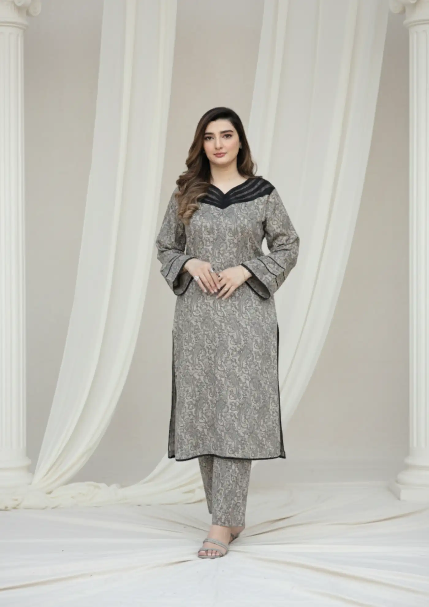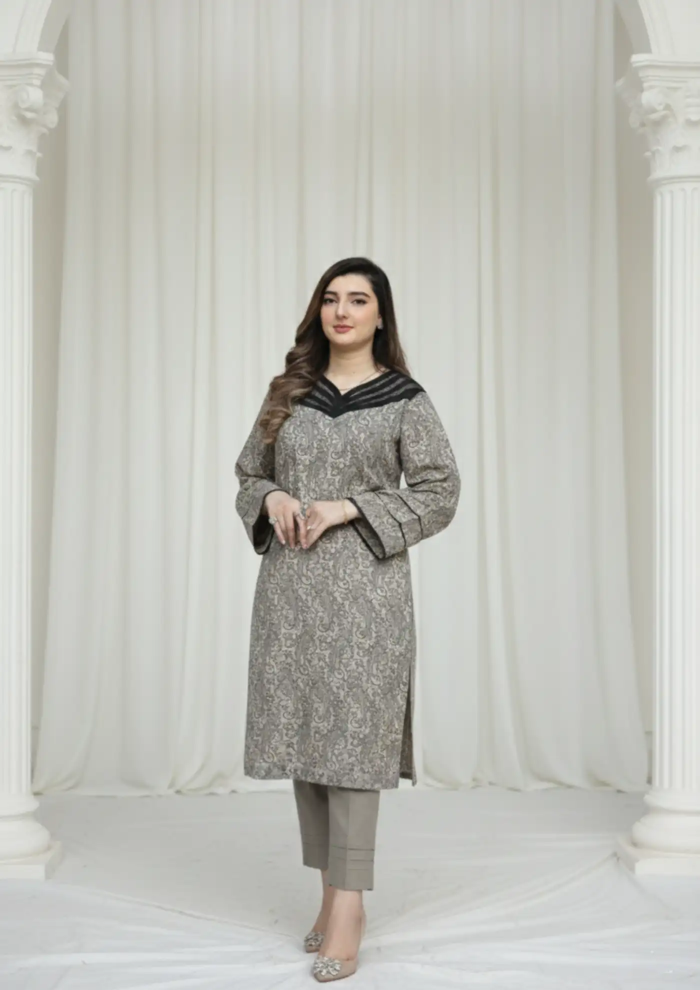 We Present a Premium-Quality Winter Outfit Crafted From Soft And Warm Wool Pashmina Fabric.