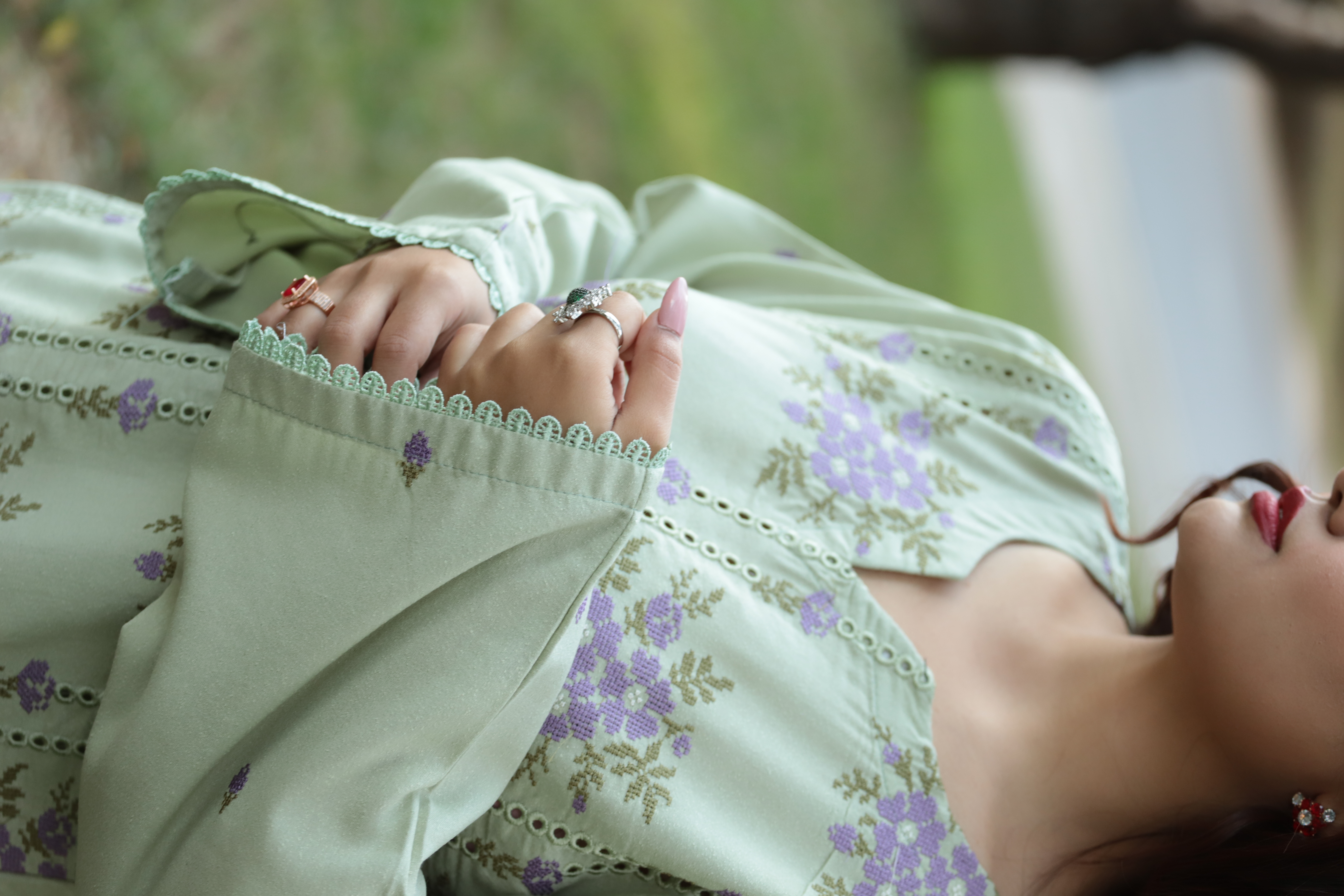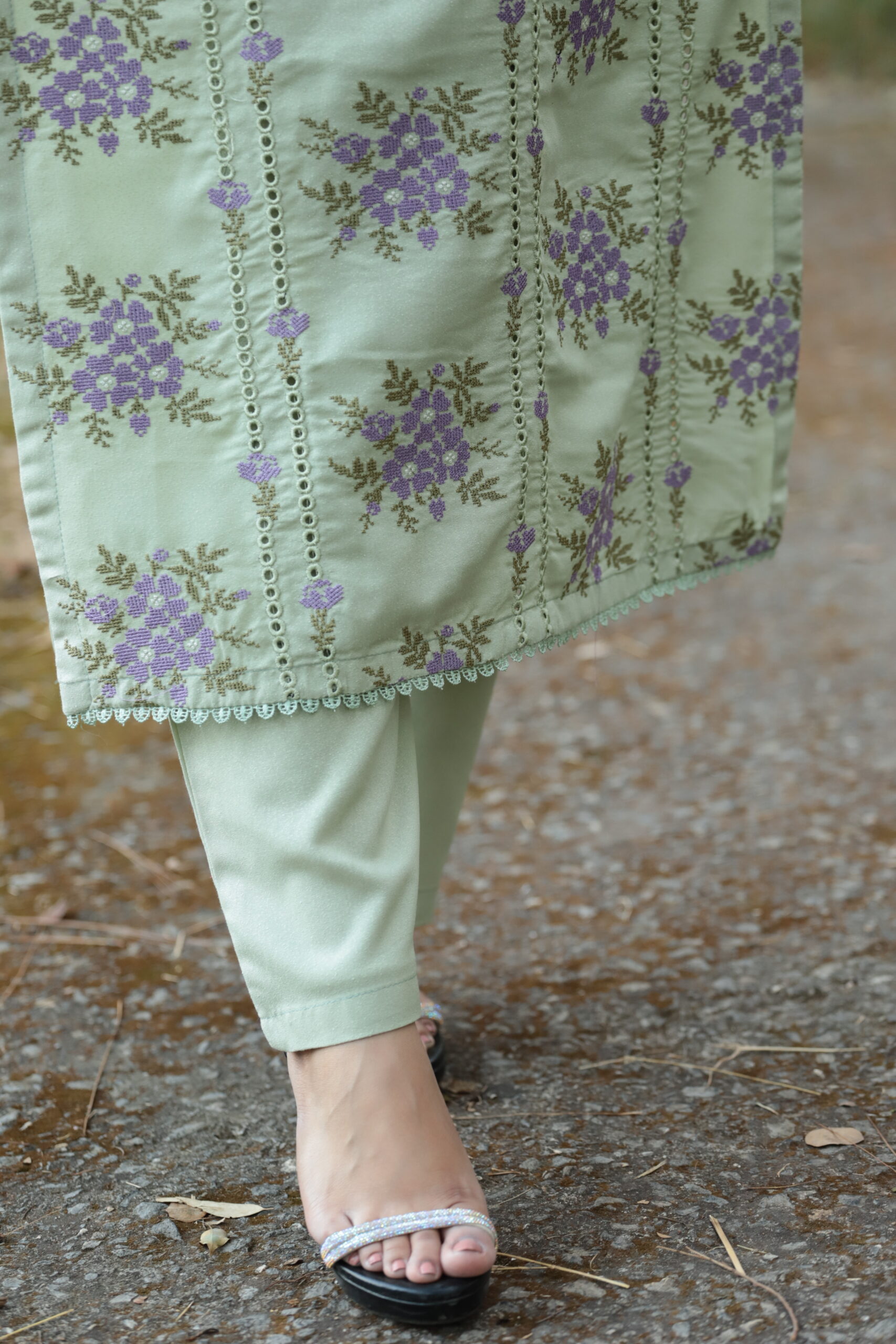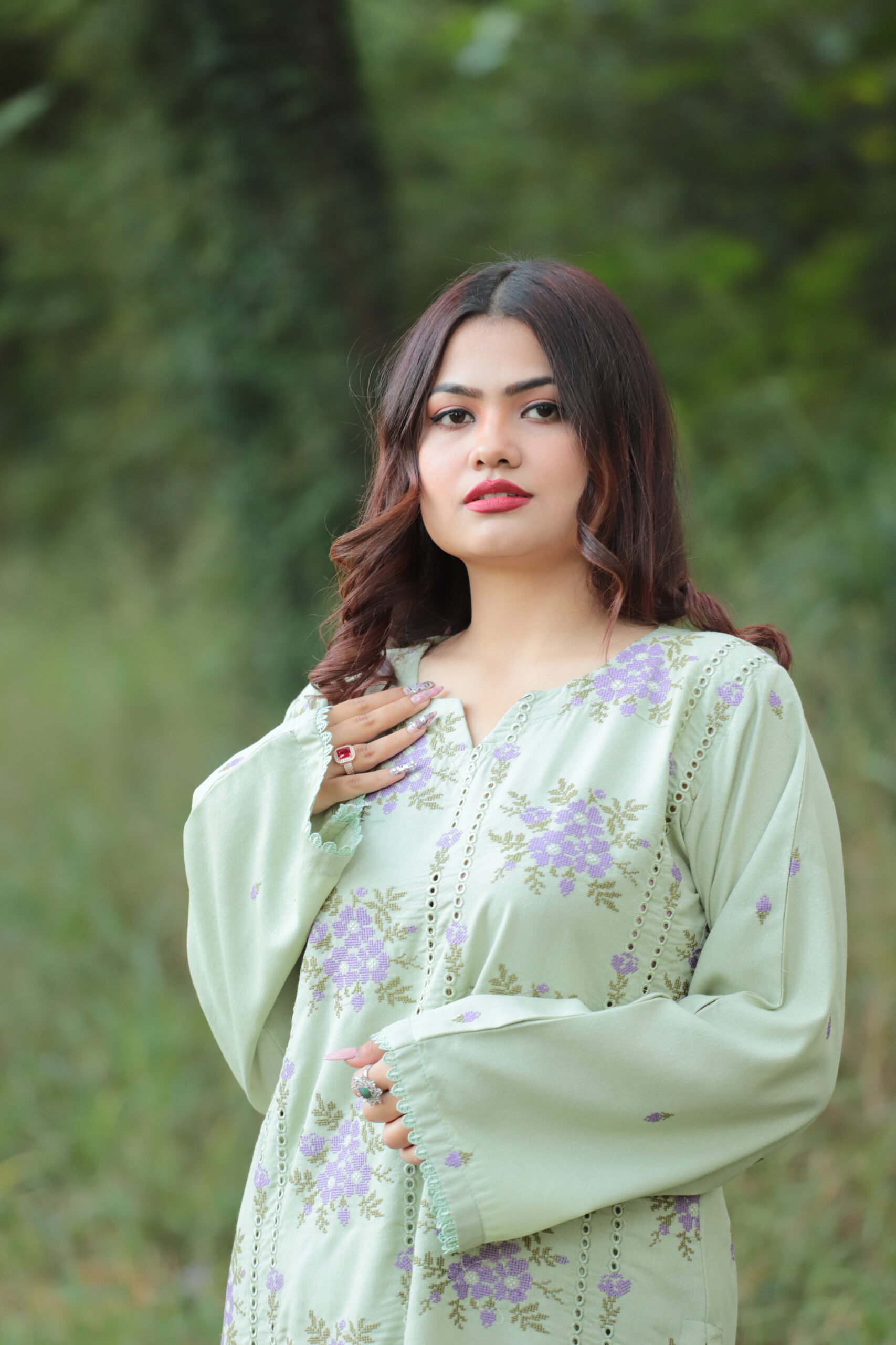 - Trouser: Plain Karandi trouser with an elasticized waistband for extra comfort.