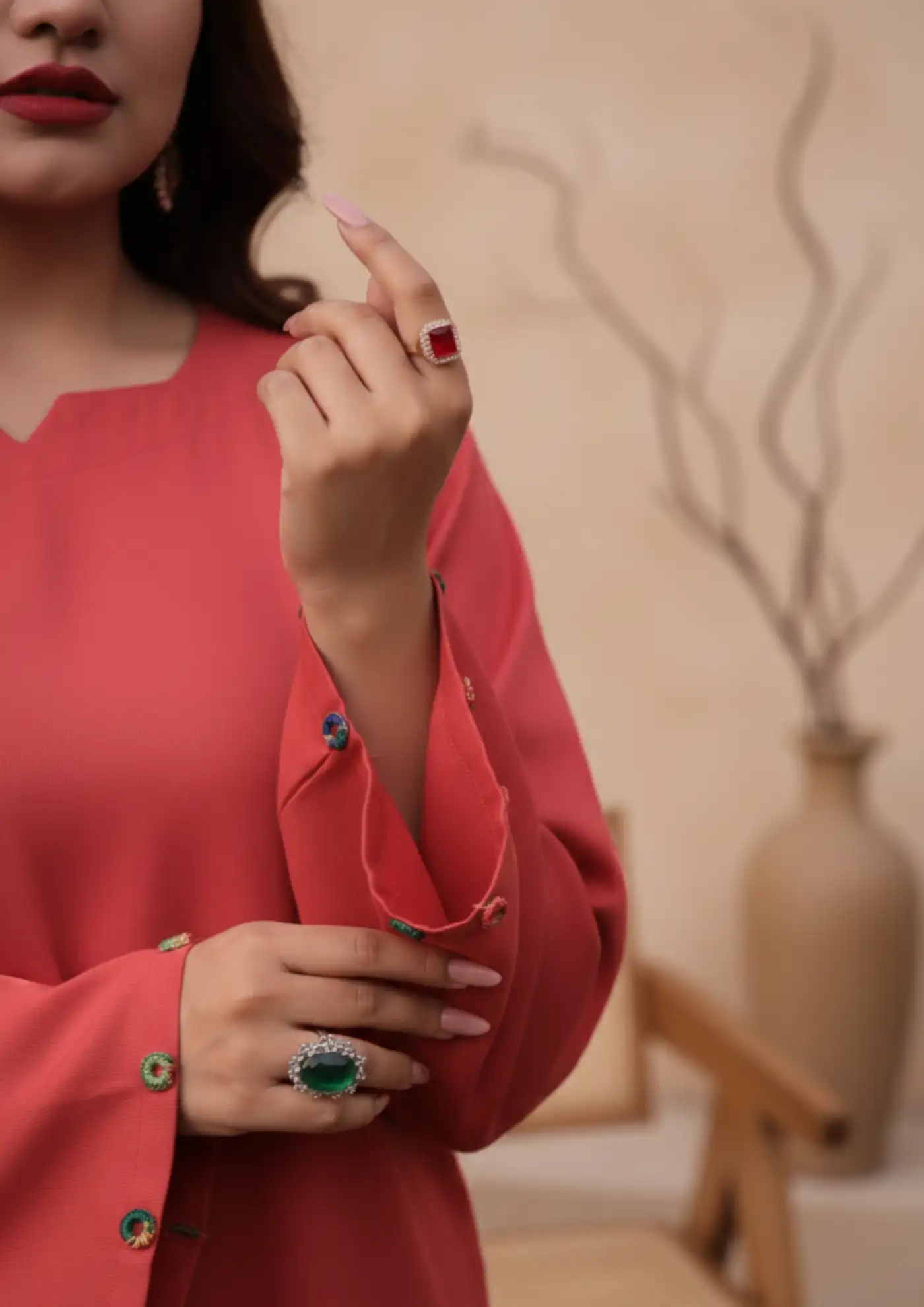 - Shirt: Plain Shirt With Mirror Button On Sleeves